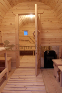 Размер окна варьируется от 120 см до 180 см в длину, ширина согласовывается индивидуально. Добавит света парному отделению, а также визуально расширит пространство.