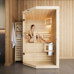 Это специально оборудованная готовая деревянная кабина для сухого и влажного парения. Электропечь нагревает пространство внутри и позволяет сбрызгивать камни водой, слегка увлажняя воздух. Такая процедура позволяет избежать перегрева. Каркас сауны выполнен из массива кедра, снаружи и внутри обшит липовой вагонкой сорта «Экстра» и имеет теплоизоляционный слой. Также двухуровневый полок идёт из кедра для обогащения внутри кабины полезными фитонцидами, а в сочетании с противовирусными свойствами липы сауна становится настоящим источником здоровья.