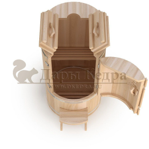 Кедровая бочка (фитобочка) – это уникальный и очень действенный метод народной медицины, основанный на принципе паровой бани. Технически бочка представляет собой открытую кабину, которая производится из сибирского кедра, дерева-фармацевта. Его древесина выделяет фитонциды – биологически активные элементы, которые обладают выраженным бактерицидным воздействием, благотворно влияют на состояние нашего организма и очищают воздух, озонируя его.