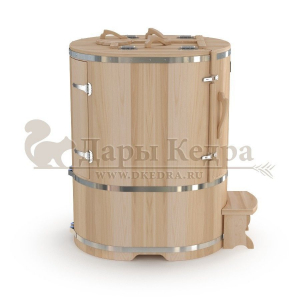 Овальная форма этой кедровой бочки позволяет комфортно разместится даже высоким людям. Встроенный парогенератор исключает дополнительный монтаж. Ширина 78 мм позволяет занести бочку в помещение со стандартным проёмом в собранном виде. Толщина стенок 45 мм позволяет увеличить срок службы изделия. Подходит для коммерческого использования.
