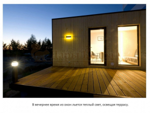 Приятный теплый свет установленных фонарей снаружи придаст дому яркость, индивидуальность и законченный вид, а также сделает отдых на природе комфортным и безопасным.