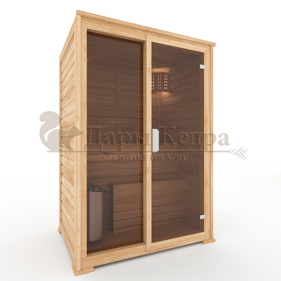 • Двухместная финская сауна кабина из кедра и липы с электрокаменкой Это специально оборудованная готовая деревянная кабина для сухого и влажного парения. Электропечь нагревает пространство внутри и позволяет сбрызгивать камни водой, слегка увлажняя воздух. Такая процедура позволяет избежать перегрева. Сауна обшита снаружи и внутри вагонкой из липы и имеет теплоизоляционный слой. Финская сауна с электропечью подойдет, как для домашнего использования, так и для коммерции. Доставляется в разборном виде щитами, собирается по инструкции с помощью шуруповёрта. Обращаем Ваше внимание, что в стоимость сауны уже включена дверь с закаленным стеклом в раме из кедра с фиксатором и деревянным фасадом справа. Вы можете заменить фасад на цельностеклянный с безрамной дверью за дополнительную плату
