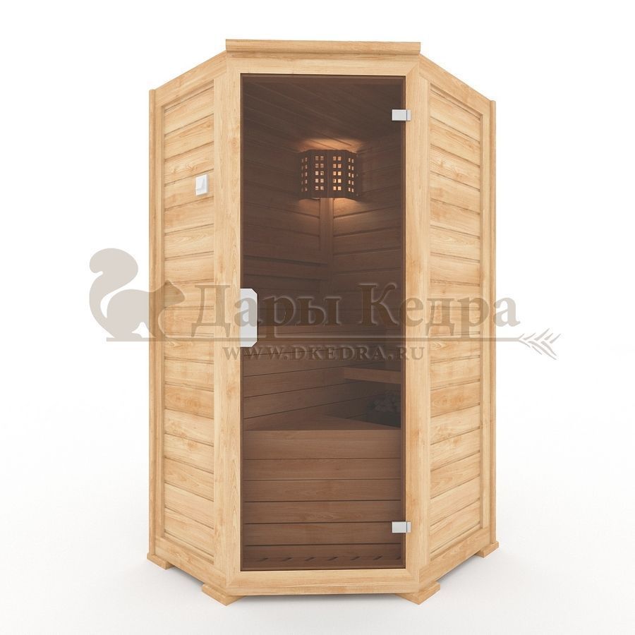 Одноместная угловая финская сауна кабина из кедра и липы с электрокаменкой
