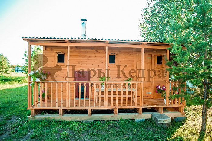 Банная конструкция из кедра должна быть длиной 5-6 метров, чтобы внутри могла расположиться просторная парная, небольшая помывочная и уютная комната с лавками или лежаками по согласованию с покупателем. Ниже представлены уже разработанные технологами компании "Дары Кедра" готовые проекты, которые включают в себя всё необходимое для комфортного времяпрепровождения на природе.