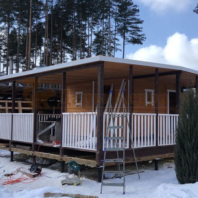Каркасно-щитовая баня из кедра «Стандарт» с верандой