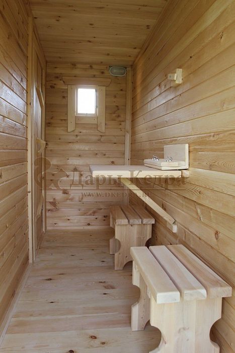 Более привычная форма универсального строения - это прямоугольная. Здесь в каждой комнате стандартные углы, без каких-либо обтекаемых форм. Тем не менее такая конструкция тоже пользуется спросом у покупателей. Здесь можно привычно организовать две комнаты для отдыха и мытья, а одну оставить в качестве сауны. Поставив в комнате отдыха диванчик, кресло, дополнив откидным или стационарным столиком, можно создать за вполне приемлемые средства очень стильное эко-пространство для проживания летом до поздней осени. В таком доме печь в парной служит для прогрева смежных комнат при открытых дверях. Такую банную конструкцию можно дополнить увеличенной верандой. На ней свободно разместятся лежаки, садовая мебель и другие предметы интерьера по желанию собственника.