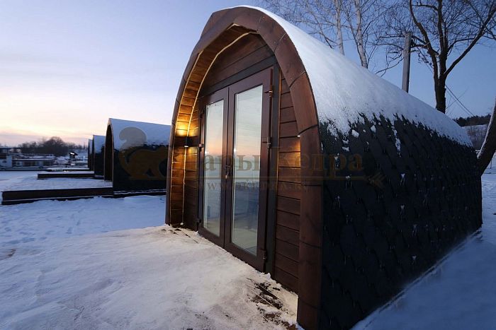 На данный момент существуют варианты кемпингов без утепления и с утеплением. Второй вариант представлен двумя моделями: викинг-дом и утепленный зимний кемпинг-дом. Особенностью таких моделей является наличие утепленного пола с покрытием - ламинат. Организованная пароизоляция под кровлей обеспечит хороший воздухообмен и не позволит скапливаться лишней влаги внутри помещения. Кроме того, в стоимость такой постройки уже включены водонагреватель, туалет, душ. Гибкая черепица по всей площади крыши также является дополнительной защитой от неблагоприятных условий внешней среды и возможностью сохранять тепло дома на долгое время. Установленные пластиковые окна и двери - это комфортное открывание, бесшумное проветривание и надежная эксплуатация в течение десятилетий.