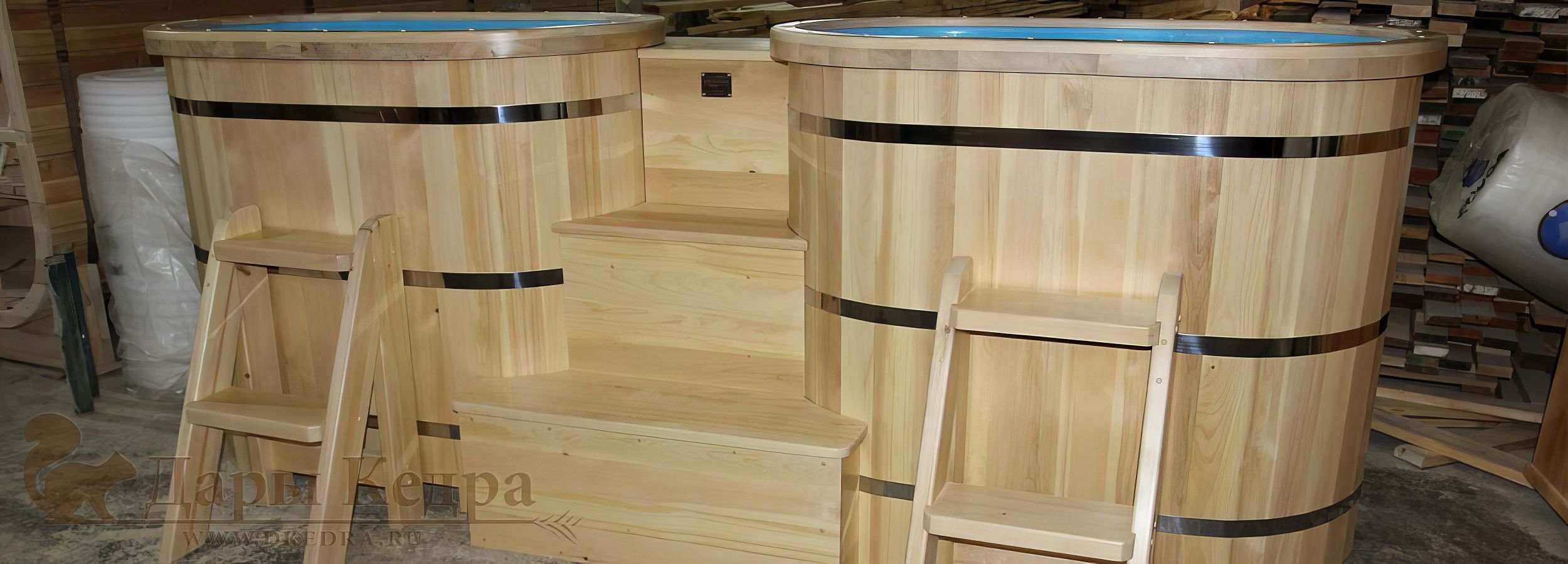 Купель двойная овальная гладкая столярная из кедра с пластиковой вставкой