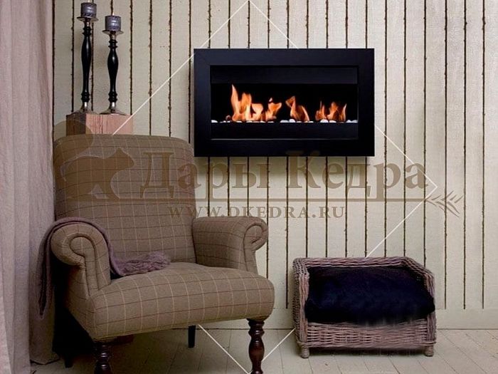 - Биокамин работает на биотопливе, которое при горении выделяет водяной пар и углекислый газ. Эти вещества выдыхает человек. Поэтому камин безвреден, от него нет запаха и дыма.
