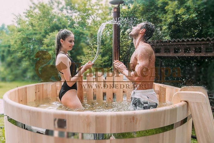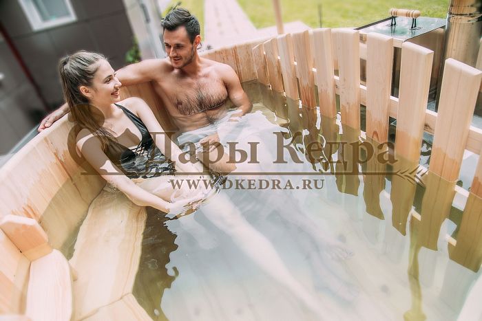 Общий принцип подготовки купели к парению в любое время года одинаков. Сначала потребуется наполнить купель водой, далее растопить печь дровами или фирменными пеллетами "Дары Кедра". Чтобы ускорить процесс подогрева воды до 37-39С необходимо воспользоваться веслом и термокрышкой. С помощью весла нужно постоянно смешивать верхние теплые слои с нижними холодными, таким образом происходит постепенный равномерный прогрев по всей поверхности. Термокрышка позволит теплу оставаться внутри, а не выходить наружу. Также она сохранит поверхность воды чистой. Летом уйдет примерно 3-4 часа на подготовку купели к парению, если считать время от начала наборы воды и до момента погружения людей в воду.