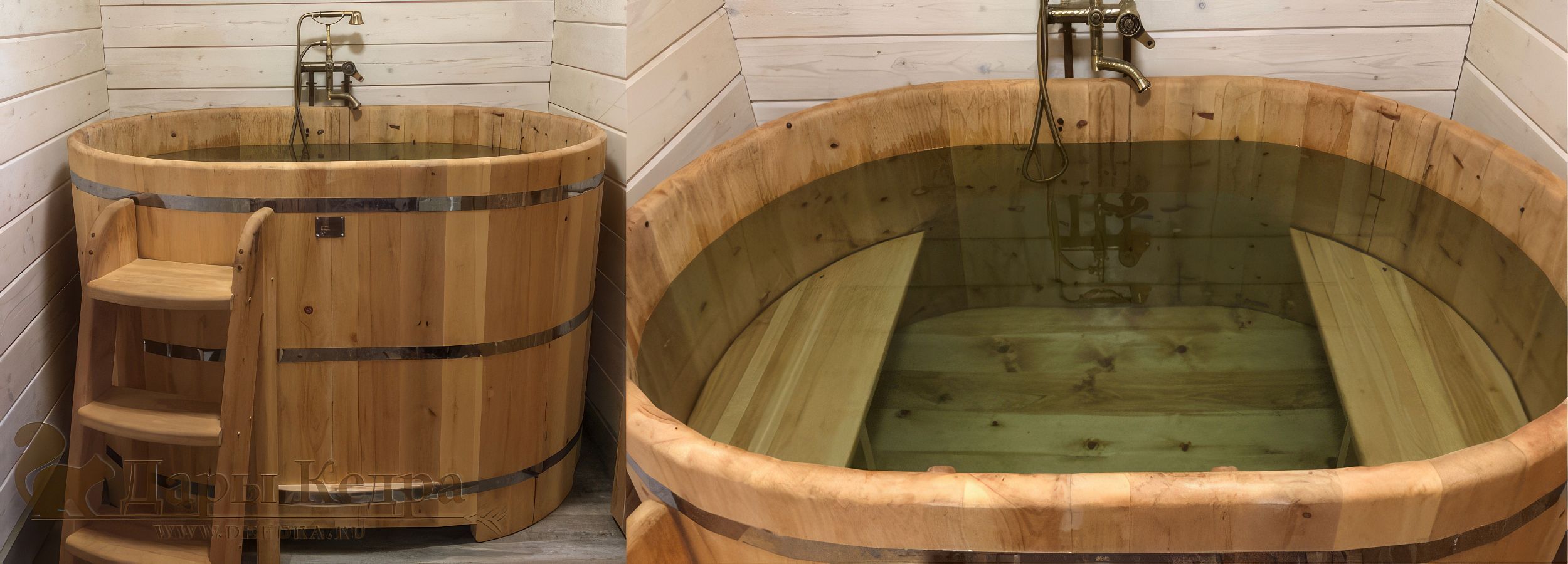 - Если кедровая ванна остается зимовать и не предполагается ее использование при минусовых температурах (вариант, когда купель установлена в бане, а баней пользуются только летом), в этом случае бочка оставляется без воды на всё холодное время года. При первой эксплуатации изделия после зимы необходимо учесть все выше описанные требования.